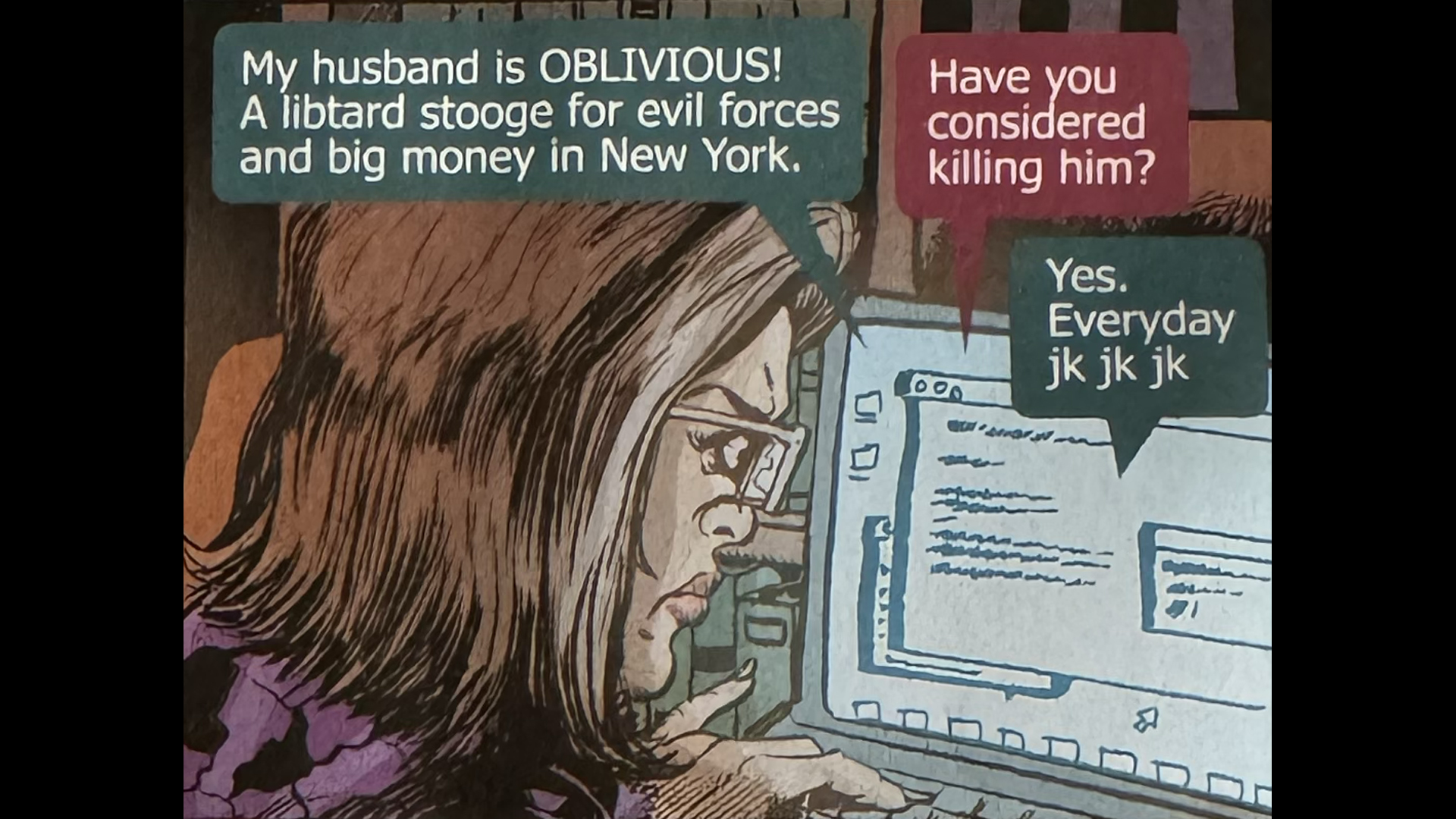 C’est sur cette dernière séquence que s’achève notre premier aperçu d’American Caper. Une première mise en bouche qui pose le contexte et qui donne terriblement envie d’en savoir plus. À travers ses premières pages, on sent que la BD ne va clairement pas prendre de pincettes et que nous allons avoir le droit à une satire de grande qualité qui n’épargne personne. L’ambiance semble vraiment bonne avec de nombreux personnages hauts en couleur qui semblent tous aussi décalés et dérangés que les détraqués que nous avons pu découvrir dans les jeux GTA.